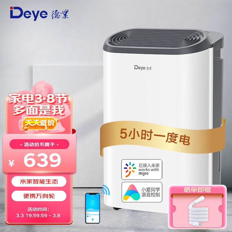 德业(deye) 除湿机/抽湿机 除湿器12升/天 wifi手机控制 家用轻音吸湿器干燥机地下室干衣机 z12a3【米家智联版】活动到手价格699元